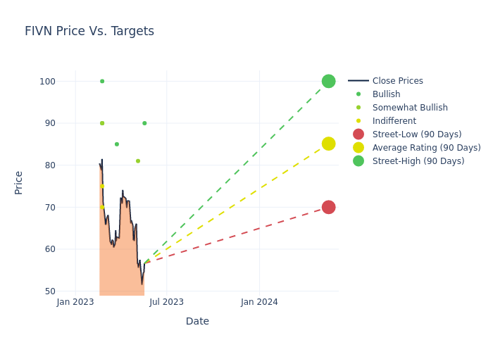 In the last 3 months, 10 analysts have offered 12-month price targets for Five9. The company has an average price target of $86.5 with a high of $100.00 and a low of $70.00.