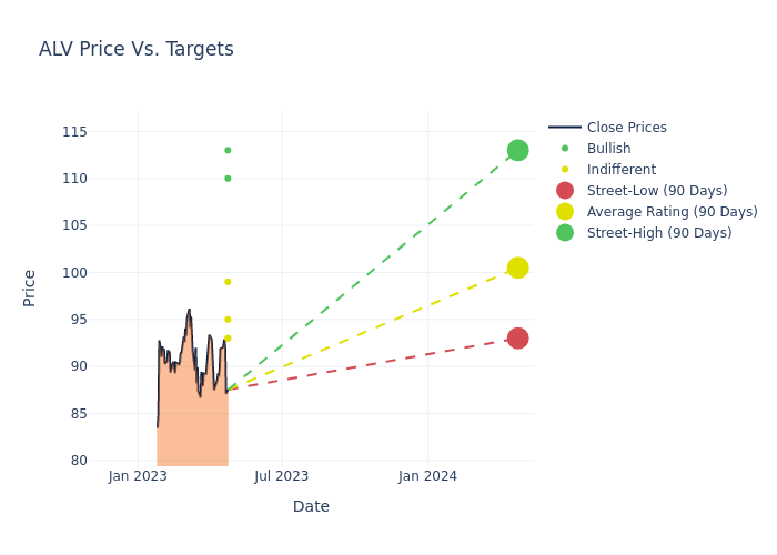 In the last 3 months, 11 analysts have offered 12-month price targets for Autoliv. The company has an average price target of $100.73 with a high of $115.00 and a low of $93.00.