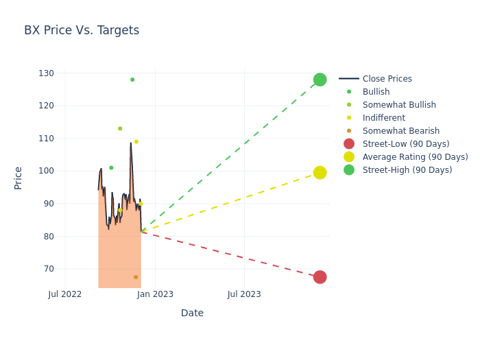 In the last 3 months, 11 analysts have offered 12-month price targets for Blackstone. The company has an average price target of $105.27 with a high of $134.00 and a low of $67.50.