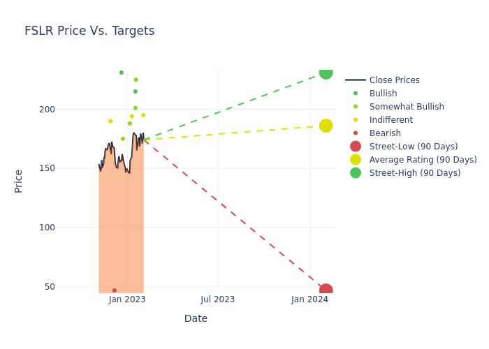 According to 12 analyst offering 12-month price targets in the last 3 months, First Solar has an average price target of $184.65 with a high of $231.00 and a low of $46.80.