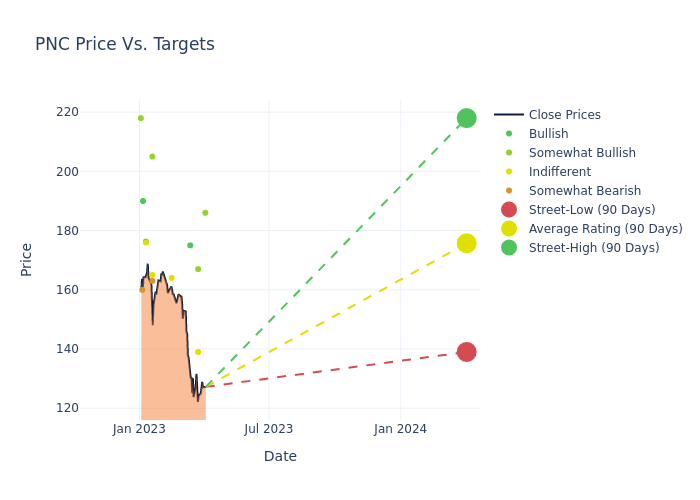 Below is a summary of how these 13 analysts rated PNC Finl Servs Gr over the past 3 months. The greater the number of bullish ratings, the more positive analysts are on the stock and the greater the number of bearish ratings, the more negative analysts are on the stock