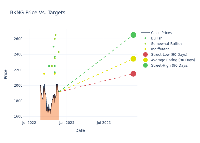 These 14 analysts have an average price target of $2320.71 versus the current price of Booking Holdings at $1915.095, implying upside.