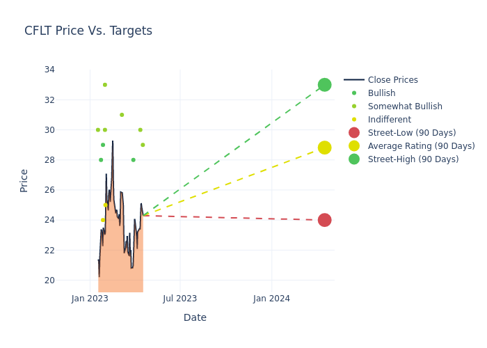 These 14 analysts have an average price target of $29.14 versus the current price of Confluent at $24.29, implying upside.
