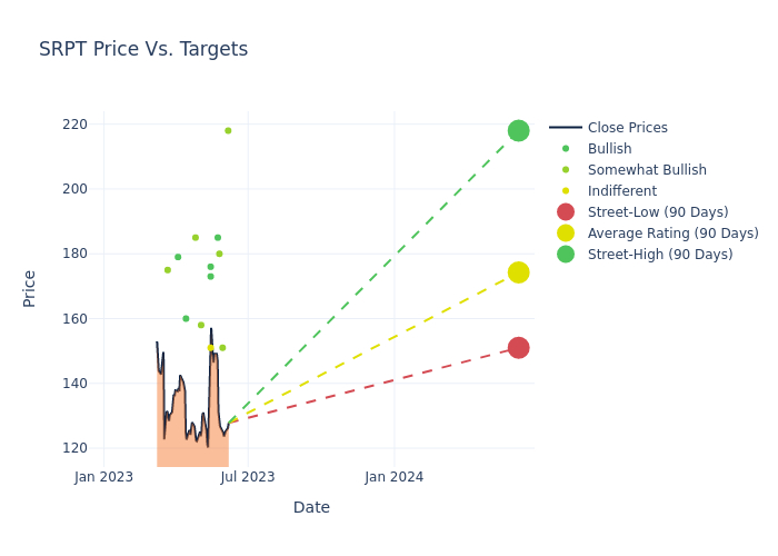 These 24 analysts have an average price target of $171.67 versus the current price of Sarepta Therapeutics at $127.825, implying upside.