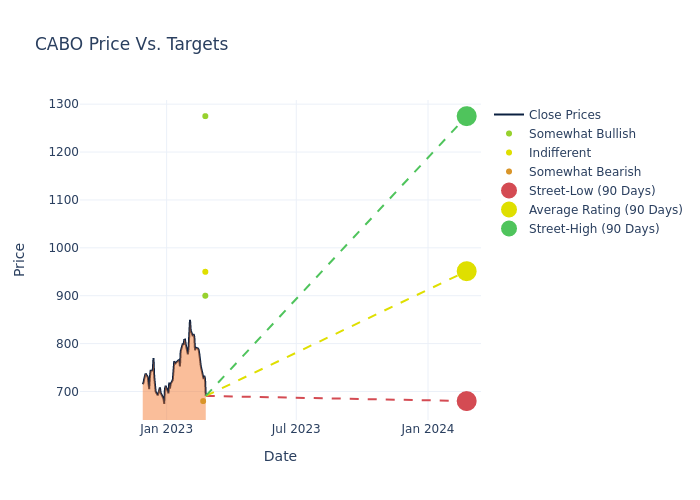 These 4 analysts have an average price target of $951.25 versus the current price of Cable One at $690.76, implying upside.