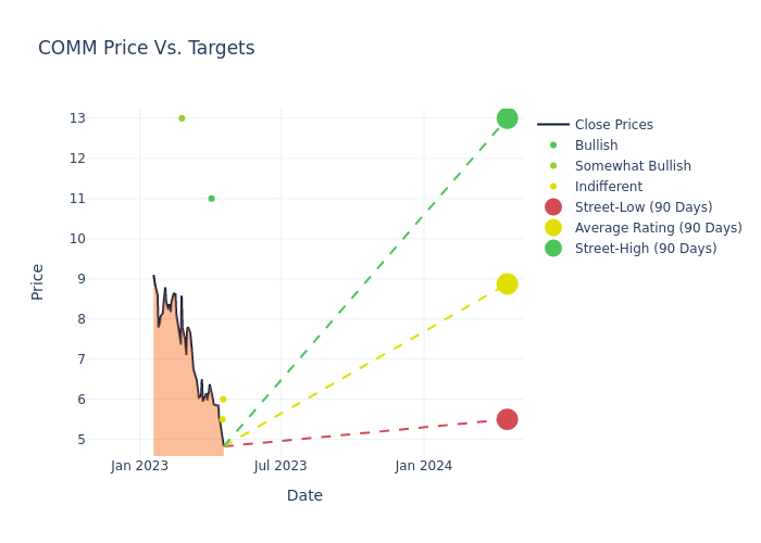 According to 4 analyst offering 12-month price targets in the last 3 months, CommScope Hldg Co has an average price target of $8.88 with a high of $13.00 and a low of $5.50.