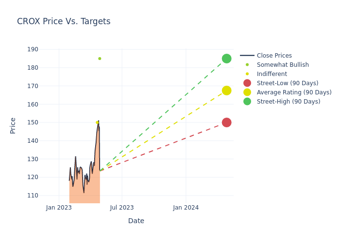 These 4 analysts have an average price target of $160.75 versus the current price of Crocs at $124.32, implying upside.