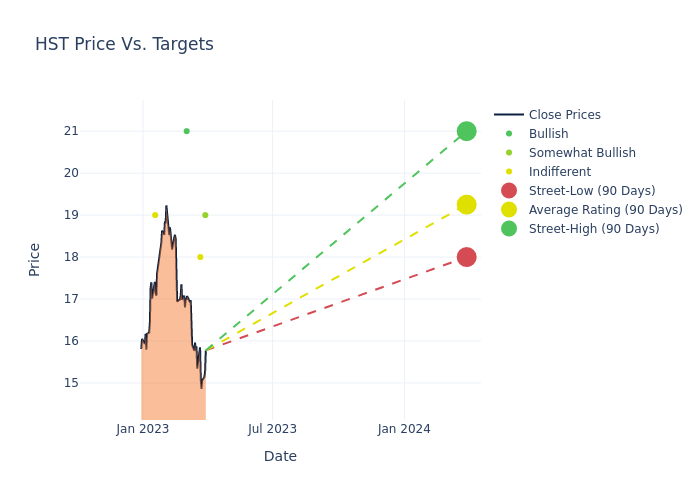 In the last 3 months, 4 analysts have offered 12-month price targets for Host Hotels & Resorts. The company has an average price target of $19.25 with a high of $21.00 and a low of $18.00.
