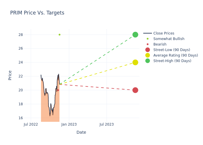 These 4 analysts have an average price target of $24.0 versus the current price of Primoris Services at $20.83, implying upside.