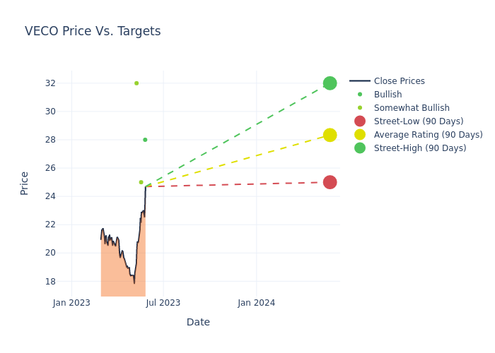 In the last 3 months, 4 analysts have offered 12-month price targets for Veeco Instruments. The company has an average price target of $28.25 with a high of $32.00 and a low of $25.00.
