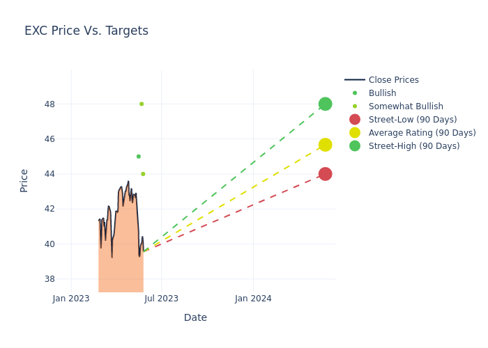 In the last 3 months, 5 analysts have offered 12-month price targets for Exelon. The company has an average price target of $46.4 with a high of $49.00 and a low of $44.00.