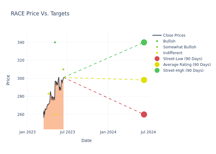 These 5 analysts have an average price target of $300.6 versus the current price of Ferrari at $301.035, implying downside.