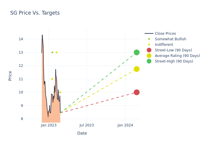 According to 5 analyst offering 12-month price targets in the last 3 months, Sweetgreen has an average price target of $11.8 with a high of $13.00 and a low of $10.00.