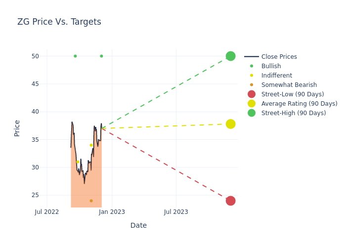 In the last 3 months, 5 analysts have offered 12-month price targets for Zillow Gr. The company has an average price target of $37.8 with a high of $50.00 and a low of $24.00.