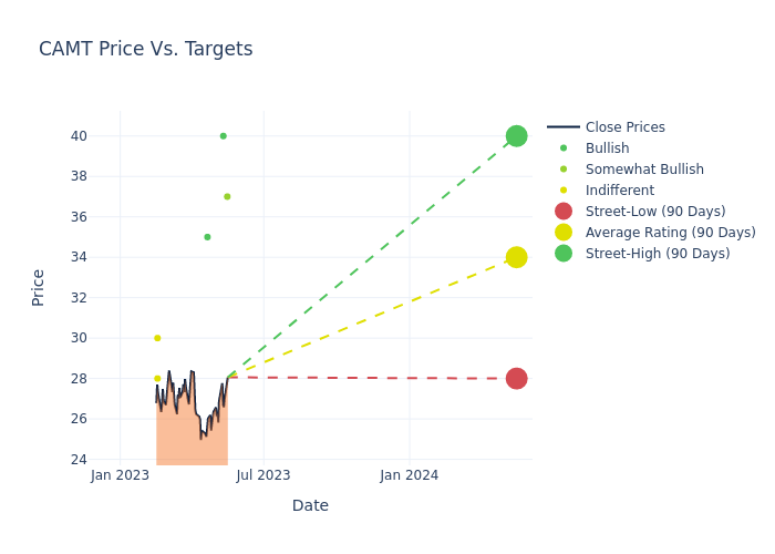 These 6 analysts have an average price target of $35.0 versus the current price of Camtek at $27.915, implying upside.