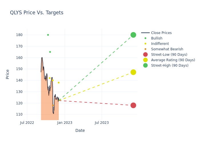 According to 6 analyst offering 12-month price targets in the last 3 months, Qualys has an average price target of $147.17 with a high of $180.00 and a low of $118.00.
