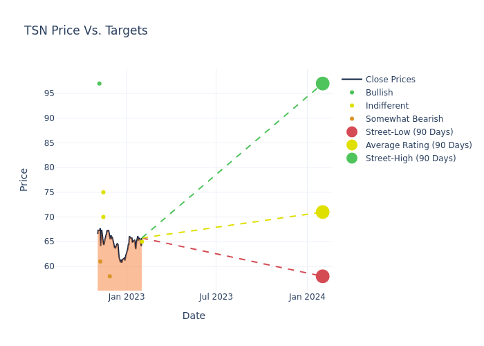These 6 analysts have an average price target of $71.0 versus the current price of Tyson Foods at $65.74, implying upside.