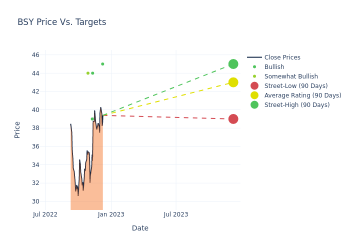 According to 7 analyst offering 12-month price targets in the last 3 months, Bentley Systems has an average price target of $40.57 with a high of $45.00 and a low of $35.00.