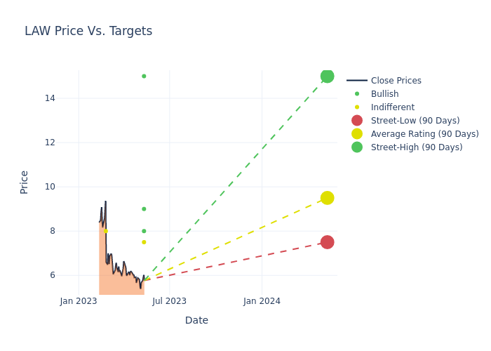 According to 7 analyst offering 12-month price targets in the last 3 months, CS Disco has an average price target of $10.0 with a high of $15.00 and a low of $7.50.