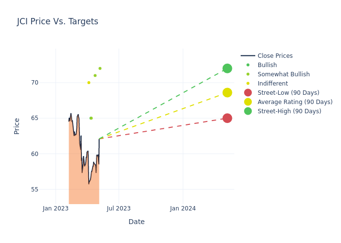 These 7 analysts have an average price target of $69.29 versus the current price of Johnson Controls Intl at $62.09, implying upside.