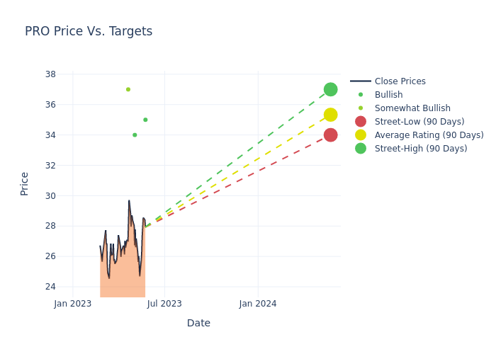According to 7 analyst offering 12-month price targets in the last 3 months, Pros Holdings has an average price target of $35.43 with a high of $37.00 and a low of $34.00.