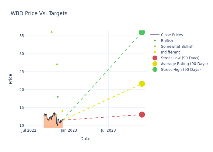 In the last 3 months, 7 analysts have offered 12-month price targets for Warner Bros.Discovery. The company has an average price target of $20.0 with a high of $36.00 and a low of $13.00.