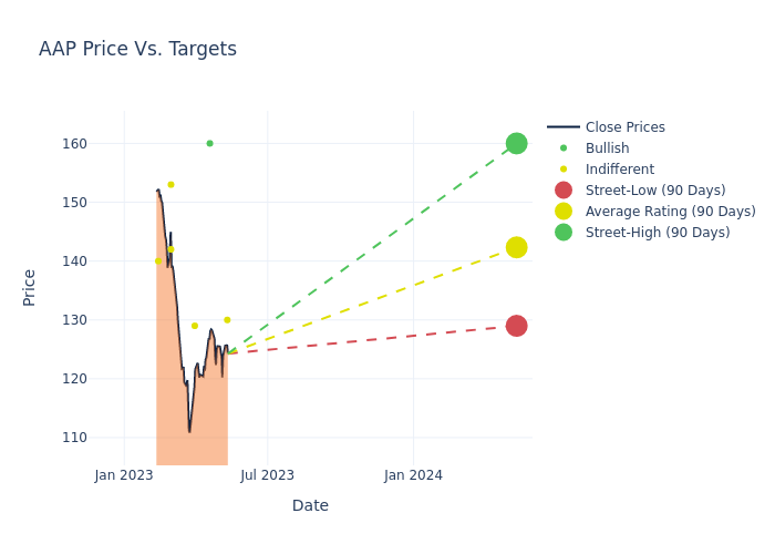 According to 8 analyst offering 12-month price targets in the last 3 months, Advance Auto Parts has an average price target of $148.62 with a high of $180.00 and a low of $129.00.
