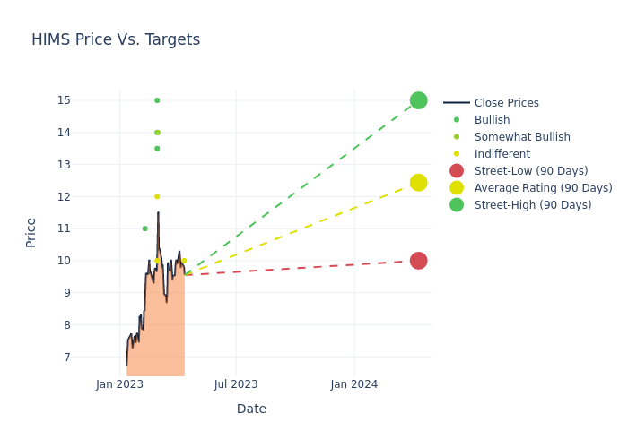 According to 8 analyst offering 12-month price targets in the last 3 months, Hims & Hers Health has an average price target of $12.44 with a high of $15.00 and a low of $10.00.