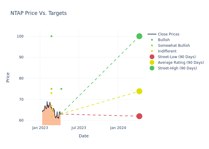 In the last 3 months, 8 analysts have offered 12-month price targets for NetApp. The company has an average price target of $73.88 with a high of $100.00 and a low of $62.00.