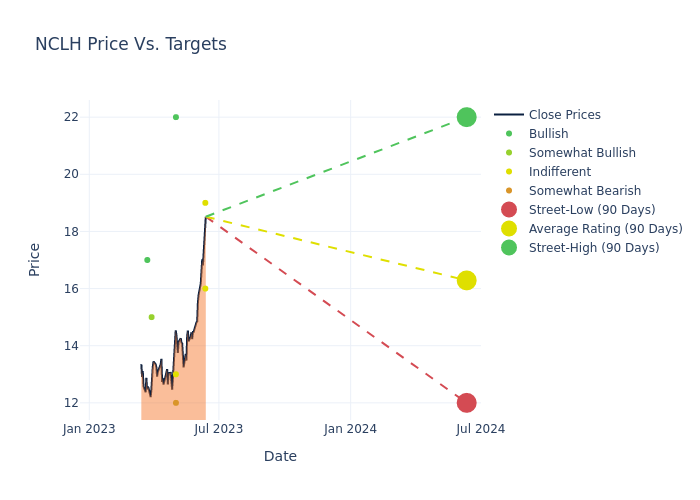 According to 8 analyst offering 12-month price targets in the last 3 months, Norwegian Cruise Line has an average price target of $16.12 with a high of $22.00 and a low of $12.00.