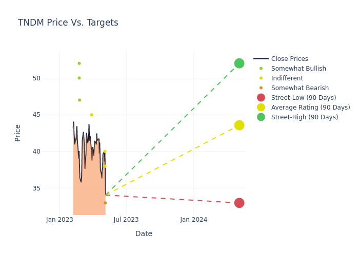 In the last 3 months, 8 analysts have offered 12-month price targets for Tandem Diabetes Care. The company has an average price target of $43.12 with a high of $52.00 and a low of $33.00.