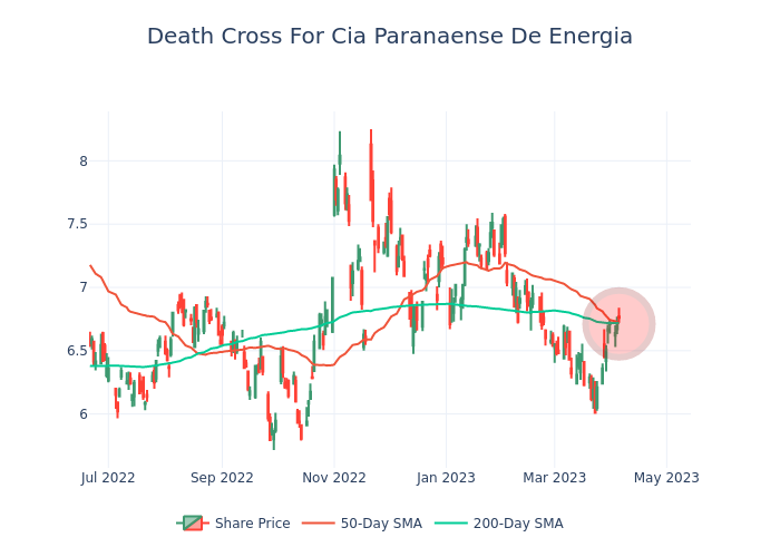 If history is any guide, there may be trouble ahead for shares of Cia Paranaense De Energia (NYSE:ELP). A so-called “death cross” has formed on its chart and, not surprisingly, this could be bearish for the stock.