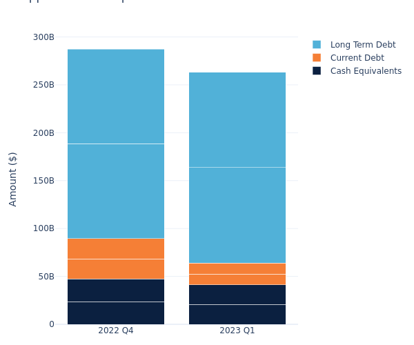 Over the past three months, shares of Apple Inc. (NASDAQ:AAPL) rose by 7.20%. Before having a look at the importance of debt, let’s look at how much debt Apple has.