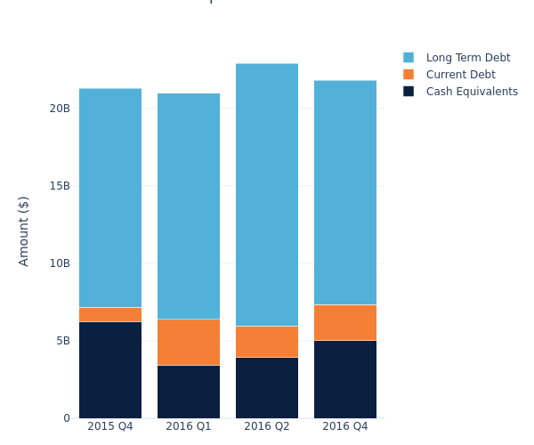 According to the AstraZeneca’s most recent financial statement as reported on March 7, 2017, total debt is at $16.81 billion, with $14.50 billion in long-term debt and $2.31 billion in current debt. Adjusting for $5.02 billion in cash-equivalents, the company has a net debt of $11.79 billion.
