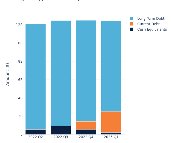 According to the Keurig Dr Pepper’s most recent financial statement as reported on April 27, 2023, total debt is at $12.24 billion, with $9.93 billion in long-term debt and $2.31 billion in current debt. Adjusting for $204.00 million in cash-equivalents, the company has a net debt of $12.04 billion.