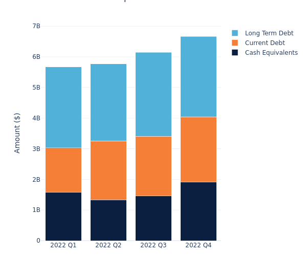 Let’s define some of the terms we used in the paragraph above. Current debt is the portion of a company’s debt which is due within 1 year, while long-term debt is the portion due in more than 1 year. Cash equivalents includes cash and any liquid securities with maturity periods of 90 days or less. Total debt equals current debt plus long-term debt minus cash equivalents.