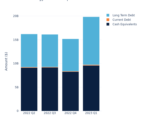 Let’s define some of the terms we used in the paragraph above. Current debt is the portion of a company’s debt which is due within 1 year, while long-term debt is the portion due in more than 1 year. Cash equivalents includes cash and any liquid securities with maturity periods of 90 days or less. Total debt equals current debt plus long-term debt minus cash equivalents.