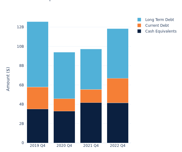 Let’s define some of the terms we used in the paragraph above. Current debt is the portion of a company’s debt which is due within 1 year, while long-term debt is the portion due in more than 1 year. Cash equivalents includes cash and any liquid securities with maturity periods of 90 days or less. Total debt equals current debt plus long-term debt minus cash equivalents.