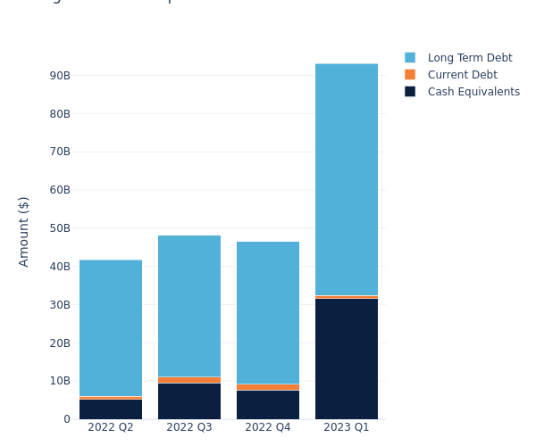 According to the Amgen’s most recent balance sheet as reported on April 28, 2023, total debt is at $61.59 billion, with $60.76 billion in long-term debt and $834.00 million in current debt. Adjusting for $31.56 billion in cash-equivalents, the company has a net debt of $30.04 billion.