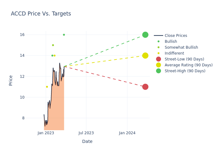 These 5 analysts have an average price target of $14.0 versus the current price of Accolade at $12.81, implying upside.