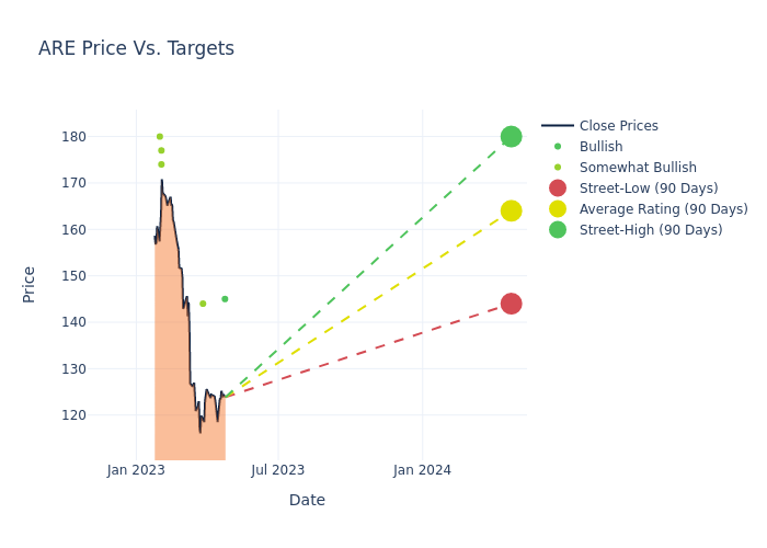 According to 6 analyst offering 12-month price targets in the last 3 months, Alexandria Real Estate has an average price target of $166.67 with a high of $180.00 and a low of $144.00.