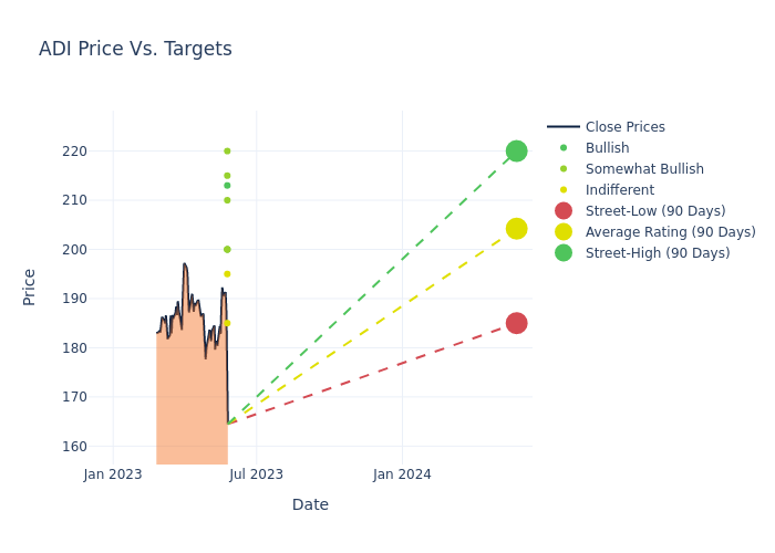 In the last 3 months, 9 analysts have offered 12-month price targets for Analog Devices. The company has an average price target of $204.22 with a high of $220.00 and a low of $185.00.