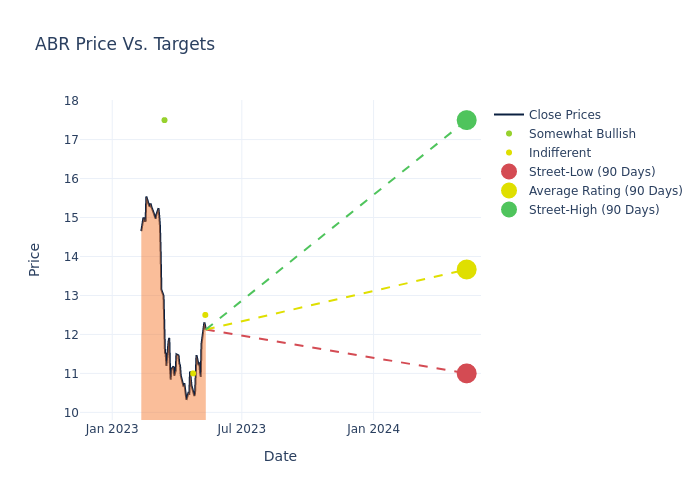 According to 5 analyst offering 12-month price targets in the last 3 months, Arbor Realty Trust has an average price target of $13.7 with a high of $17.50 and a low of $11.00.