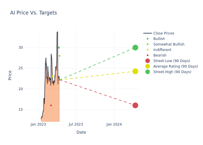 These 8 analysts have an average price target of $25.62 versus the current price of C3.ai at $22.04, implying upside.