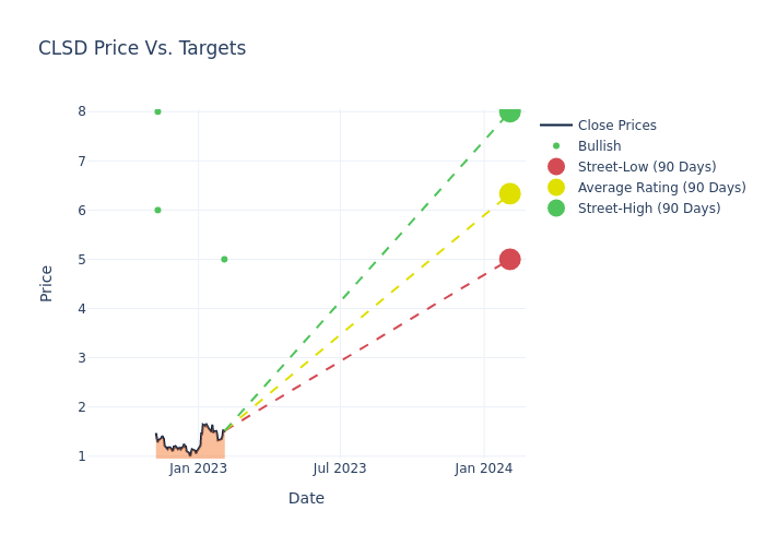 According to 4 analyst offering 12-month price targets in the last 3 months, Clearside Biomedical has an average price target of $6.0 with a high of $8.00 and a low of $5.00.