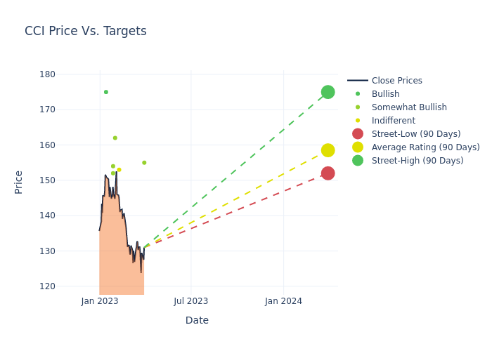In the last 3 months, 7 analysts have offered 12-month price targets for Crown Castle. The company has an average price target of $157.57 with a high of $175.00 and a low of $152.00.