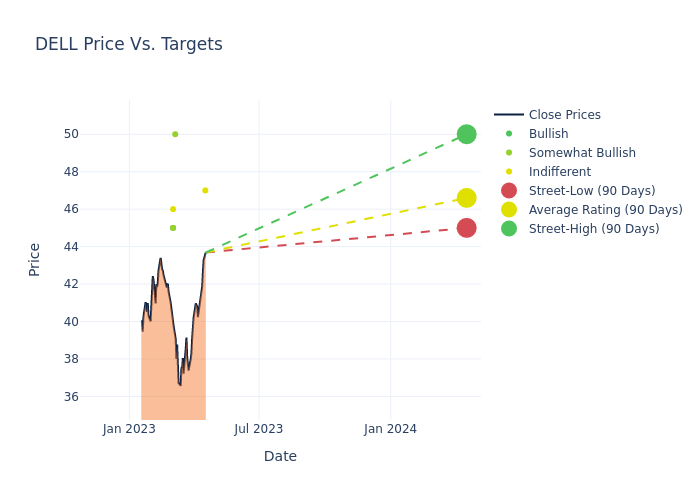 These 7 analysts have an average price target of $46.71 versus the current price of Dell Technologies at $43.685, implying upside.