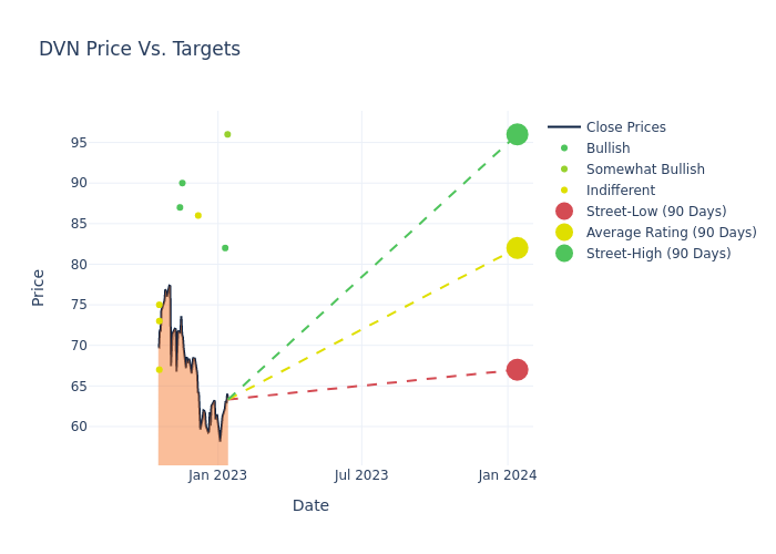 In the last 3 months, 11 analysts have offered 12-month price targets for Devon Energy. The company has an average price target of $83.73 with a high of $96.00 and a low of $67.00.