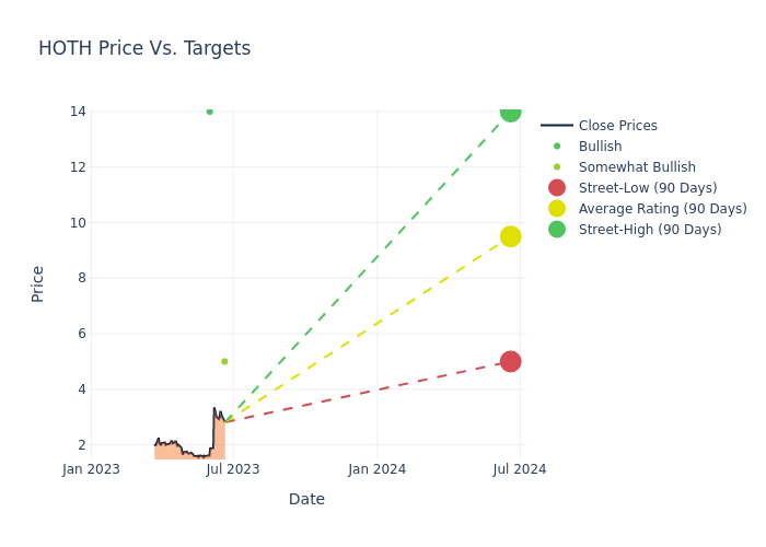 In the last 3 months, 5 analysts have offered 12-month price targets for Hoth Therapeutics. The company has an average price target of $10.4 with a high of $14.00 and a low of $5.00.