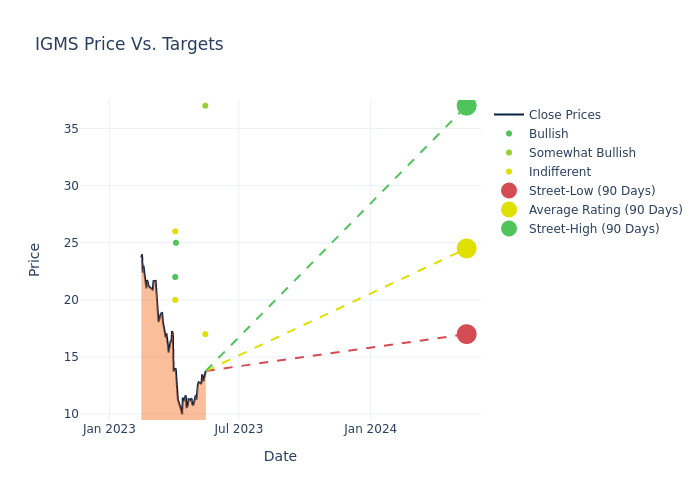 In the last 3 months, 7 analysts have offered 12-month price targets for IGM Biosciences. The company has an average price target of $24.0 with a high of $37.00 and a low of $17.00.